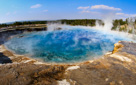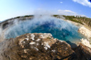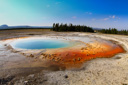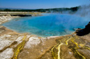 Rudyard Kipling, who visited Yellowstone in 1889, immortalized this basin by referring to it as "Hell's Half Acre." The main highlights of this boardwalk are Excelsior Geyser/Spring and Grand Prismatic Spring—often times, both features are obscured by steam rising from the surface of their water. The hotter the air temperature, the less likely steam will hinder your view.