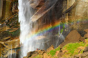 The Mist Trail climbs 1.5 miles from Happy Isles to the top of Vernal Falls, offering the hiker an unbelievable trek through a rainbow shrouded, misty paradise. The first portion of the hike follows the John Muir Trail, 0.8 miles to the Vernal Fall Footbridge that spans the Merced River, where you will get a great view of the 317 foot high Vernal Falls. In addition to the great view, there is also a restroom and water fountain located at the bridge, just in case you need either facility.