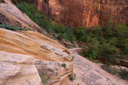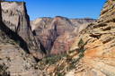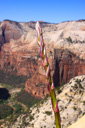 With Weeping Rock disappearing into the depths of the canyon, the trail continues its relentless climb, reaching the Hidden Canyon Trail junction at 1.5-miles. The main trail to Observation Point turns northward and continues to gain altitude among a myriad of wildflowers—keep your pace and you will soon reach a fairly level section as you head into Echo Canyon.