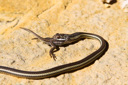 Leaving the cool recesses of Echo Canyon, the trail once again begins climbing—this time towards the promontory of Mount Baldy. Sweeping views are now the focus of weary hikers climbing the west-facing rib of the mountain—switchbacks after switchback finally reward those who persevere with a dizzying view from The Mesa. It was along this section of the trail that we came across a scene straight out of National Geographic—a small garter snake had just caught a lizard and was swallowing it head first! We watched as nature took its course, and then finally the lizard was gone and the snake had a full belly—a sad day for the lizard, but a very happy ending for the snake.