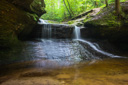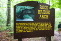 Leaving the picturesque stream, the trail climbs through a shady forest of magnolia and hemlock before rejoining the creek at a small waterfall—12 foot high Creation Falls. On our visit, the water level was low but Creation Falls was still beautiful, in fact, we could see behind the veil of water for a glimpse of an arch in the making—if we return in about 25,000 years, it should be complete. At this point, you can cross the creek and descend to the base of the falls on the opposite bank, or continue following the main trail and cross at the bottom of the falls—if you choose to cross the creek, be careful, the rocks are slippery and you might find yourself on your backside like Reader—ouch! Once you leave Creation Falls, the stream meets Swift Camp Creek and then Rock Bridge is just around the corner at mile 0.66—note that water is actually flowing under the span, making it a “true” natural bridge.