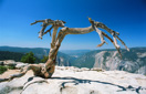 Sentinel Dome, at a distance of only 1.1 miles (2.2 miles roundtrip), ranks as one of the most accessible Domes in Yosemite. You will gain 402 feet on this hike and once you reach the summit you will be at 8,122 feet, the second highest point in Yosemite Valley—topped only by Half Dome. Your reward for climbing the gradually steep trail is an amazing view of Half Dome in all its glory, along with the chance to see the lone Jeffrey Pine that graces the summit of Sentinel Dome. The tree died in 1984, but its stark skeleton still beckons hikers and photographers alike. You will find the trailhead for Sentinel Dome along Glacier Point Road, located at the same parking lot as Taft Point, so you can easily combine these two hikes for some of the best views in Yosemite.