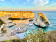 Once you locate the parking lot, simply follow the dirt path toward the abandoned railroad tracks – cross the tracks and you will see signs near a trash can where the path steeply descends to the beach. There are also several paths along the bluffs that offer a bird’s eye view of the beautiful cove – hike along both, or choose your option, for stunning views of a unique destination.