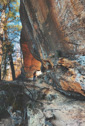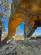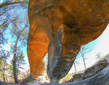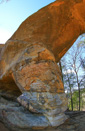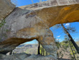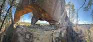 Hiking the loop in a clockwise direction had us standing atop the sandstone arch in a mere 0.2-mile – the lofty perch providing spectacular unimpeded views of the surrounding gorge and national forest.