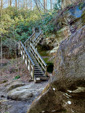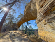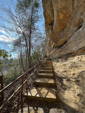 The loop trail passes over and beneath the 75 feet long and 23 feet high Sky Bridge, along an impressive sandstone ridge, and then up a flight of metal stairs (75 steps) back to the parking area – an absolute must-do trail if you find yourself exploring the Red River Gorge.