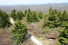The summit, complete with a stone and steel observation tower, grants the hiker a 360 degree view of the rugged high country vegetation, including the deformed but beautiful red spruce trees that have been flagged by constant exposure to the strong westerly winds.