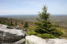 As far as the eye can see, grassy openings and forested ridges stretch out below the peak, fading into Virginia off in the distance. We spent several minutes admiring the view from the tower before setting off on the 0.5-mile Whispering Spruce Trail, which encircles the Spruce Knob Tower. Along this nature trail, which apparently used to have interpretive signs (they were missing on our visit); we enjoyed hiking through the rocky patches of thick spruce.