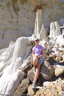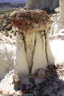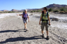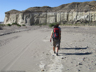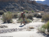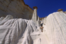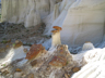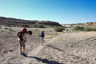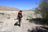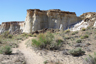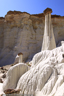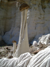 When you arrive at the wash, look for a sign along a rickety fence that reads Wilderness Study Area, No Vehicles, foot and horse travel permitted—park here and start hiking south along the wash. We set off down the trail armed with sunscreen, bottled water, and sun visors—after hiking in the wash for about thirty minutes, we caught our first glimpse of the towering white pedestals—wow!