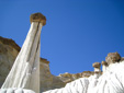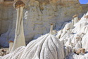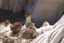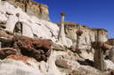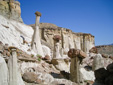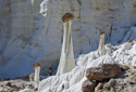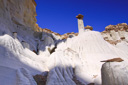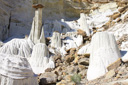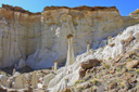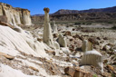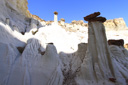 The Wahweap Hoodoos, a congregation of impossibly white, rock spires topped with reddish-brown capstones, are quickly becoming one of Grand Staircase-Escalante National Monument’s most recognized formations. The hoodoos are generally described as three separate groupings—the White Hoodoo, Hoodoo Central, and the Towers of Silence. The three groups are separated by just a few miles and you can visit all three in one morning without a problem if you follow the route described below—I say morning because the best light for photography purposes is from sunrise to early morning, but you can enjoy the hike at anytime of the day.