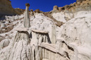 There are two ways to reach the trio of hoodoo groupings—you can hike 9.2-miles roundtrip from Big Water, Utah, or you can access them from the southern end of Cottonwood Canyon Road (located near Churchwells, Utah) for a mere 2-mile roundtrip trek. The mileage calculations mentioned here assume that you consider the Towers of Silence, the most interesting visually of the three groups, as your primary destination. Obviously, the longest route to the Towers of Silence is via Big Water and the shortest is from the Cottonwood Canyon Road access—we decided to take the shorter route, since we were only interested in exploring the Towers of Silence hoodoos. Whichever route you choose, you will be hiking through Wahweap Wash, a normally dry, hot and shadeless trek—be prepared with adequate water, sunscreen, and protective clothing.
